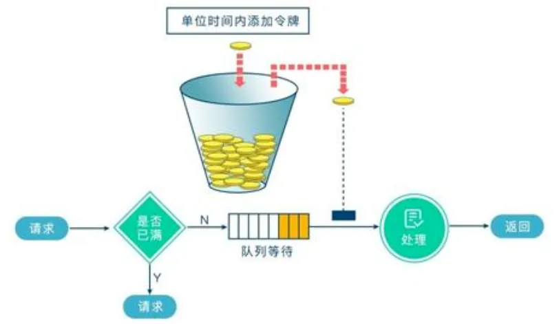 系统会维护一个令牌(token)桶,以一个恒定的速度往桶里放入令牌(token),这时如果有请求进来想要被处理,则需要先从桶里获取一个令牌(token),当桶里没有令牌(token)可取时,则该请求将被拒绝服务。令牌桶算法通过控制桶的容量、发放令牌的速率,来达到对请求的限制。