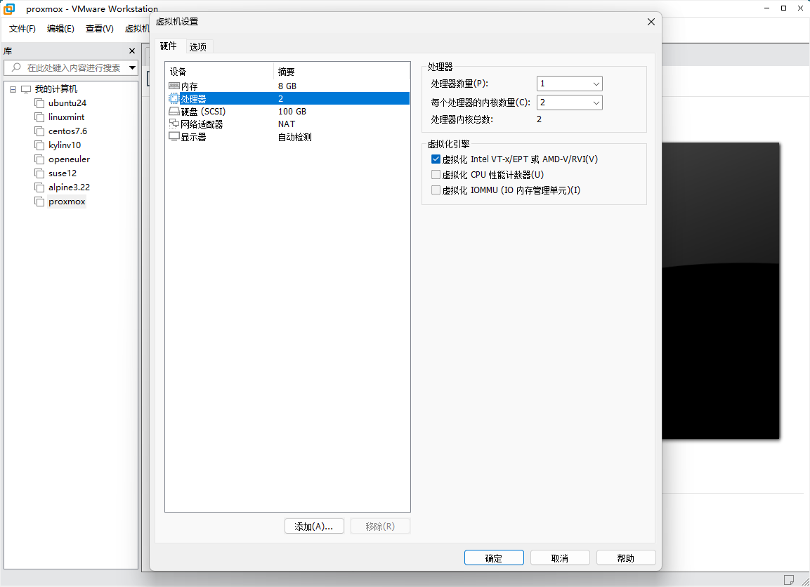 IOMMU 已启用(如需 PCI 直通):Intel VT-d/AMD-Vi