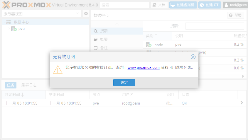 首次登录 Proxmox